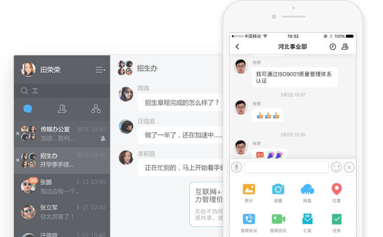 企信专注于工作的内部通讯系统,排除繁杂消息,支持单聊/群聊、文字/语音、文件/图片等传输,并提供工作事项快速创建入口;聊天记录/文件云端长期储存;群公告,让重要通知更快速有效的传达到位。