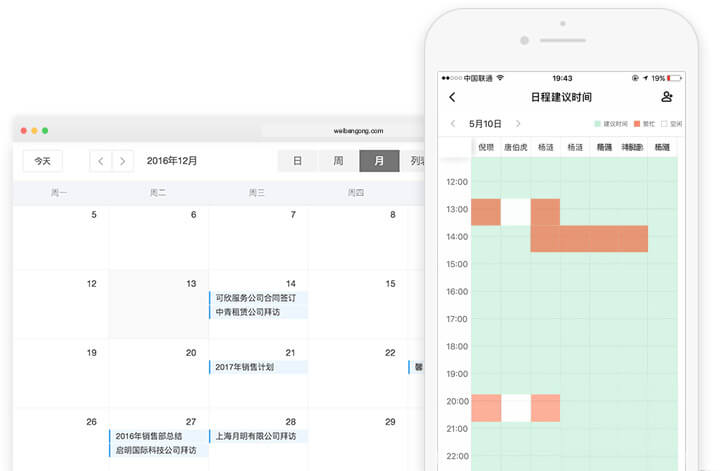 将工作安排加入日历,有序安排自己/他人日程,查看同事空余时间发起会议邀请,会议安排更合理;预定时间自动提醒不遗忘重要事项,专职秘书让你的工作有条不紊。