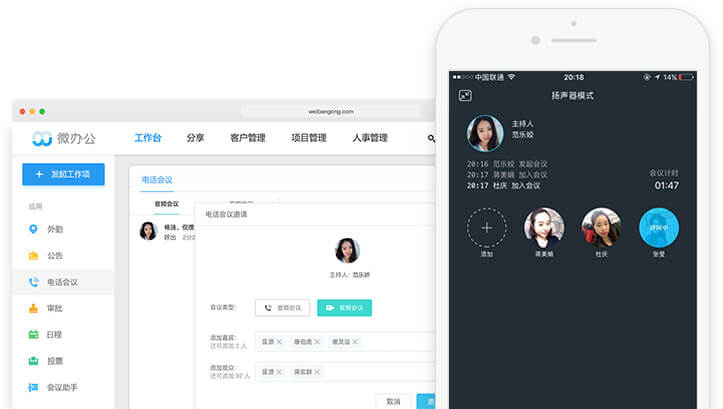 音/视频两种电话会议,通话清晰、品质保证、无需硬件、快速发起,支持共享电脑屏幕、ppt讲解等多元场景,角色划分主持人/嘉宾/观众,支持同时在线人数高达百人。远程事项决策、异地高效协同办公,不再是难题。