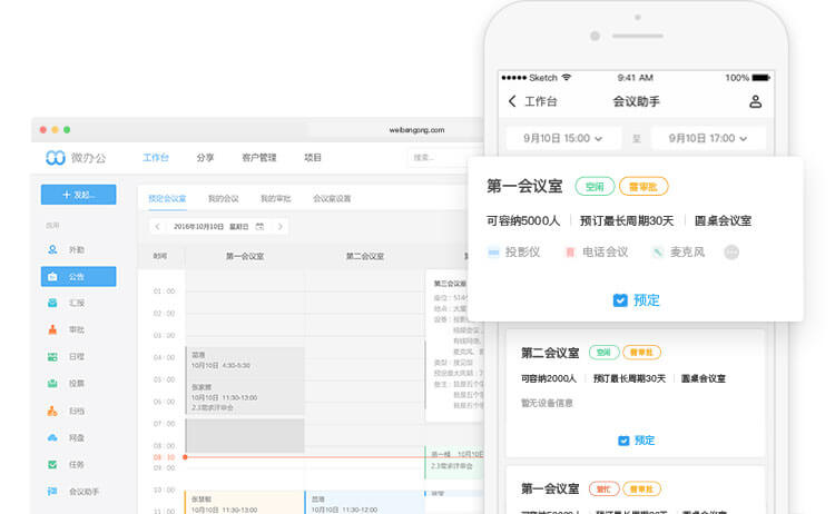 实现会议室资源合理管控,会议室预定关联日程,检测受邀人空闲时段,减去沟通时间,快速发起人员邀请;同时支持申请审批环节,资源利用更可控;会后添加会议纪要,信息同步、重要决策可追溯。